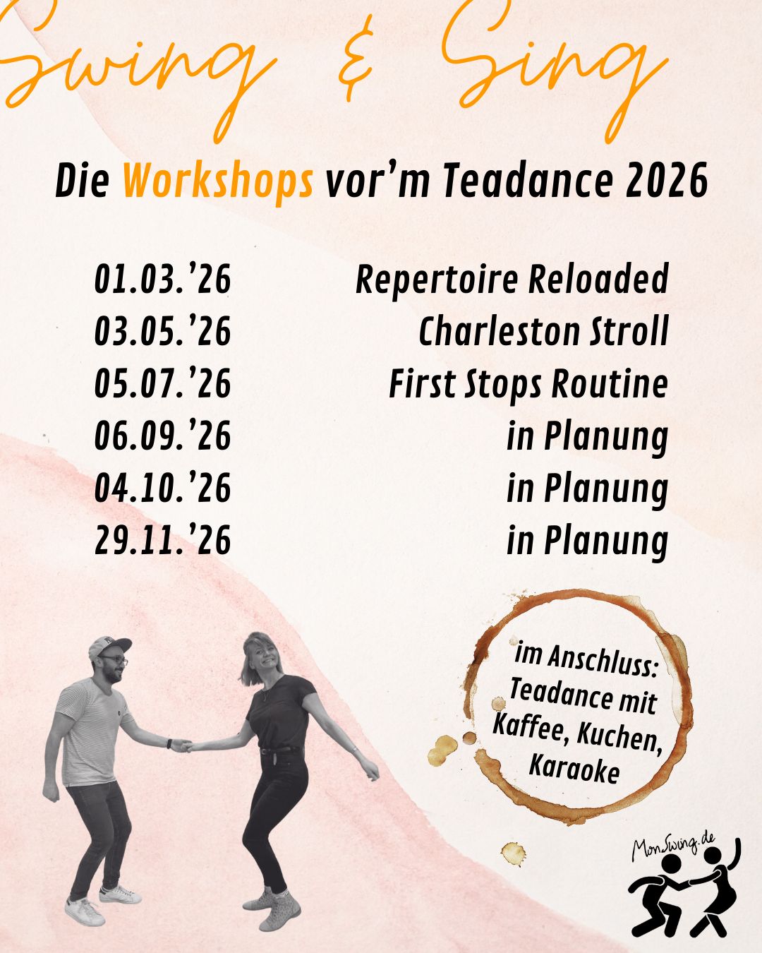 Der Eintritt zum anschließenden „Swing & Sing“- Teadance ist für Workshopteilnehmende frei.
